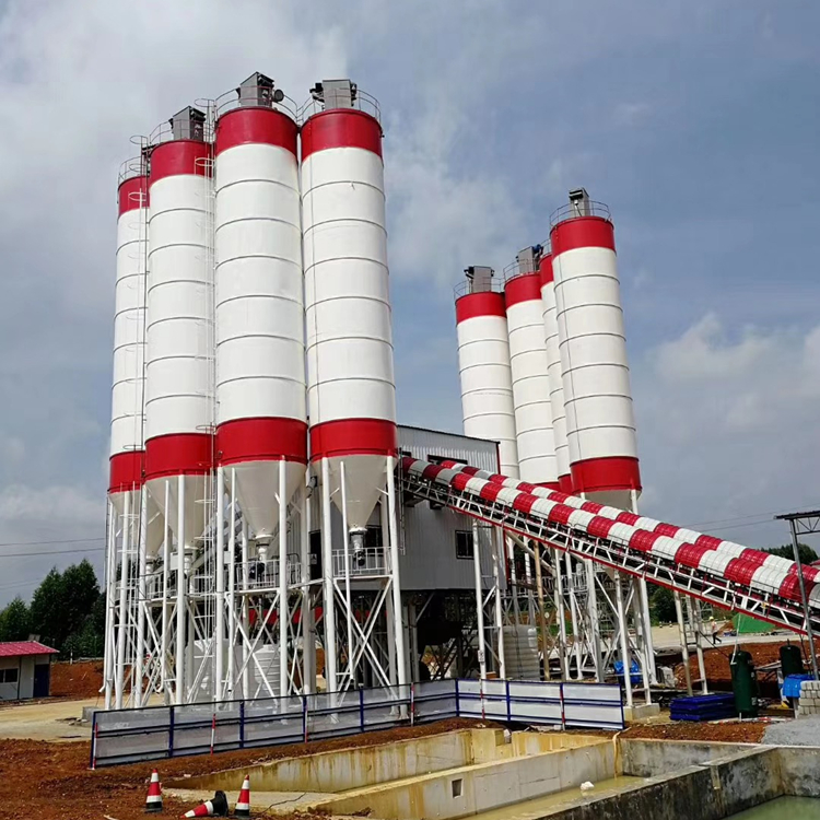 3.HZS180混凝土攪拌站中的砂石上料系統(tǒng)采用大寬度人字皮帶上料,可以按需設(shè)置人行安檢走道。