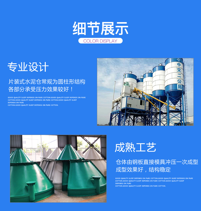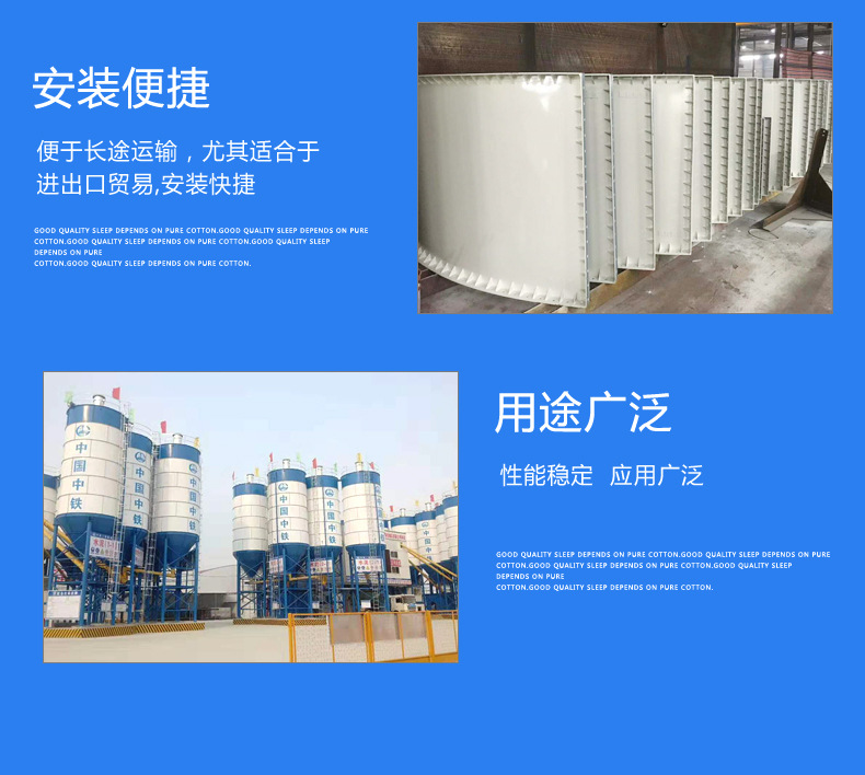 片狀水泥倉(片裝水泥罐)片裝分體水泥倉設(shè)備信息和產(chǎn)品說明:我公司提供各種容積噸位的片狀水泥倉,片裝水泥倉,適合儲存糧食、水泥、粉煤灰等各種散裝物料,罐體上裝有料位系統(tǒng),能夠顯示物料的位置。片狀水泥倉,片裝水泥倉針對水泥倉出口裝箱困難、現(xiàn)場制筒困難、工地轉(zhuǎn)移困難,運輸超高超寬等諸多難題。