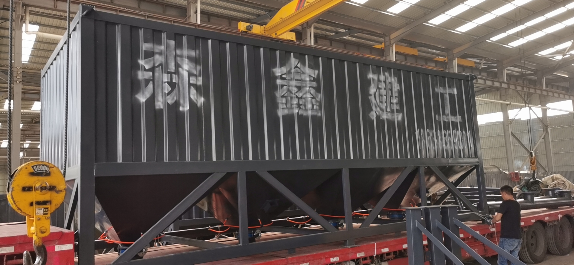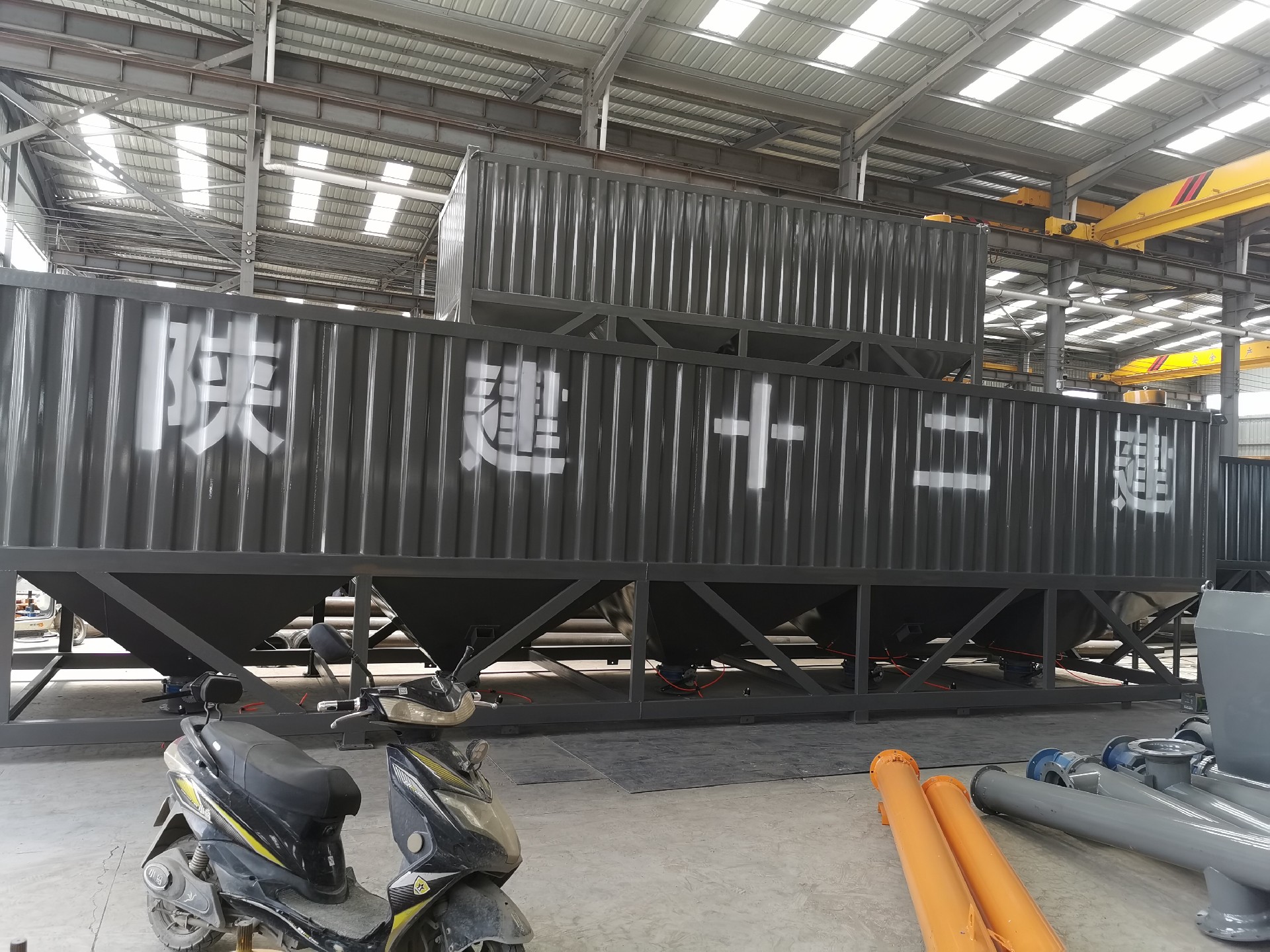 臥式水泥倉為方形,底部由數(shù)條支腿支撐,出料錐體為方形錐體,倉體為瓦楞板和型材組成的框架焊接而成,整體高度偏低。臥式水泥倉在底部設(shè)有水泥卸料口和螺旋輸送機,可方便的進(jìn)行卸料和輸送。和傳統(tǒng)立式水泥倉相比,臥式水泥倉對地基要求低,可直接立放于地面,可方便的使用卡車或平板車運輸而無須拆卸。臥式水泥倉,常見2斗,4斗,6都等,常見規(guī)格30噸,50噸,80噸,100噸等,可以根據(jù)客戶要求定制。